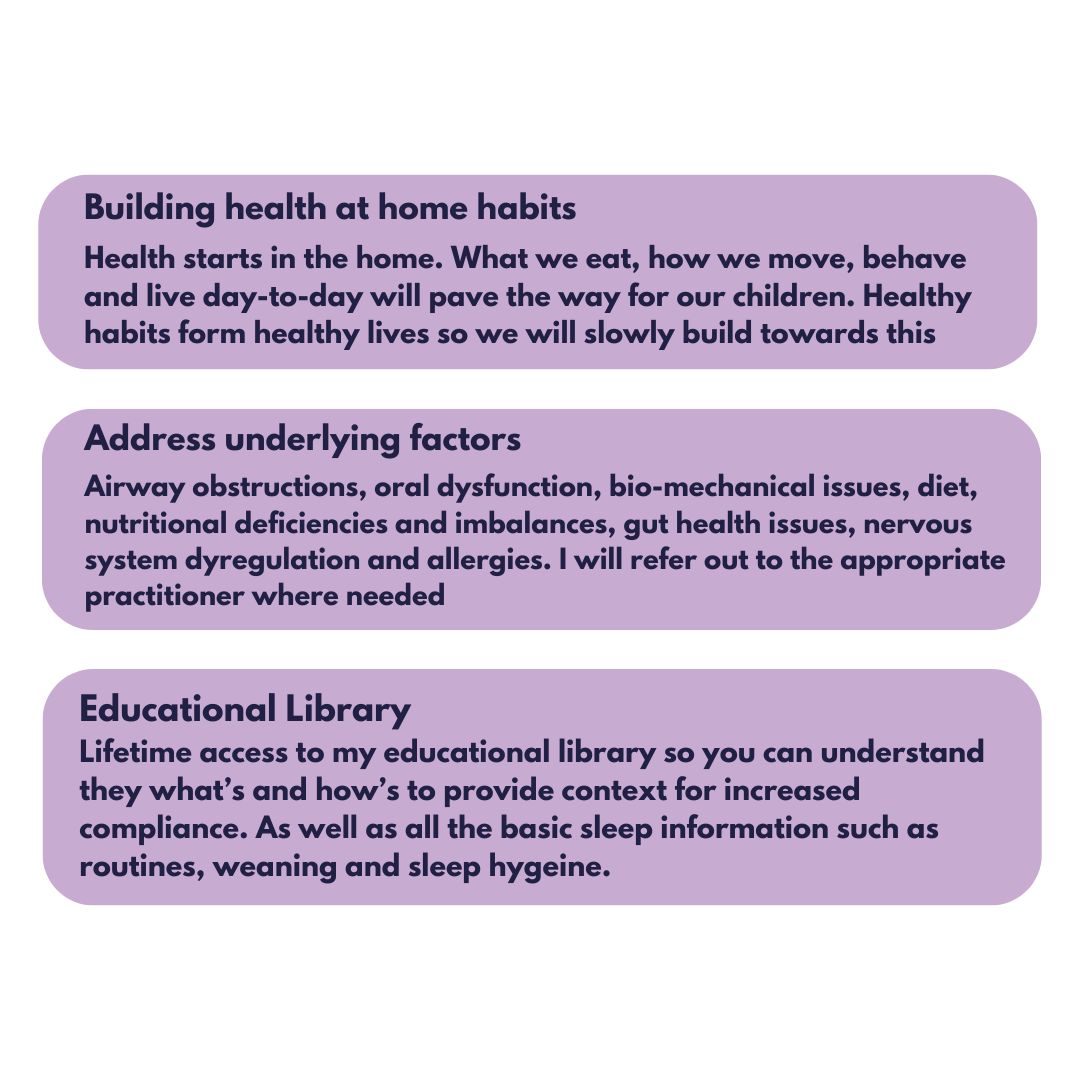 Sleep is not a behaviour issue, it’s a biological function. Supporting the body early leads to lasting improvements in sleep, health, and development.